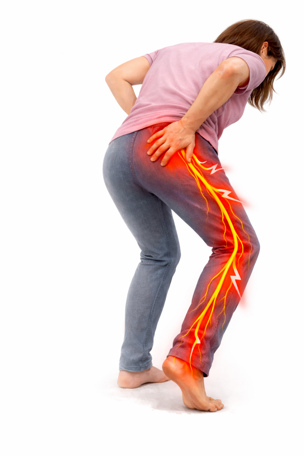 坐骨神経痛は、お尻〜太もも〜ふくらはぎ〜足先にかけて走る「坐骨神経」が刺激され、